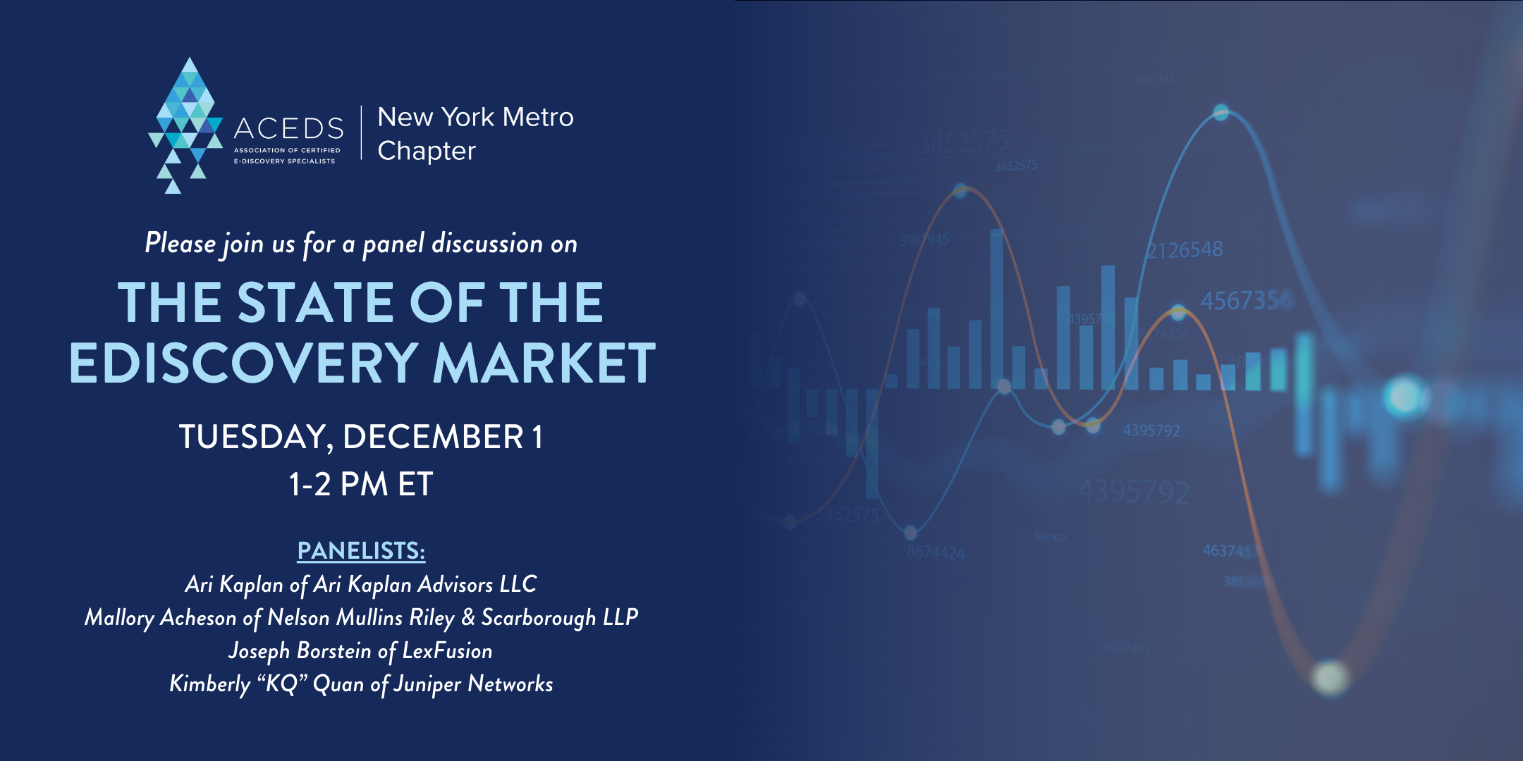 Join the ACEDS New York Metro Chapter for a panel discussion Join Ari Kaplan, Mallory Acheson, Joseph Borstein and Kimberly “KQ” Quan for a panel discussion on the state of the eDiscovery market.